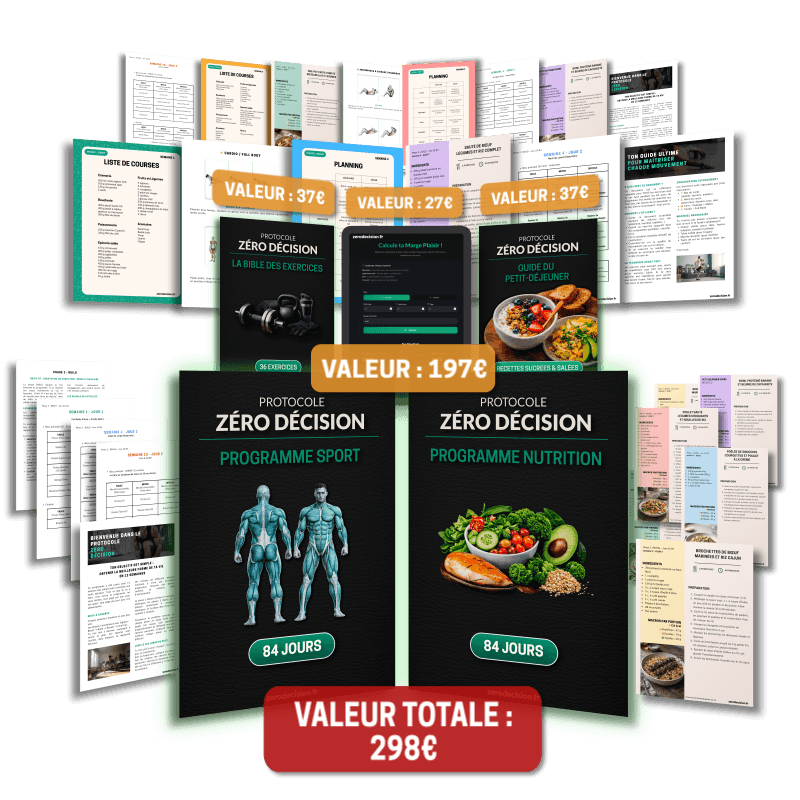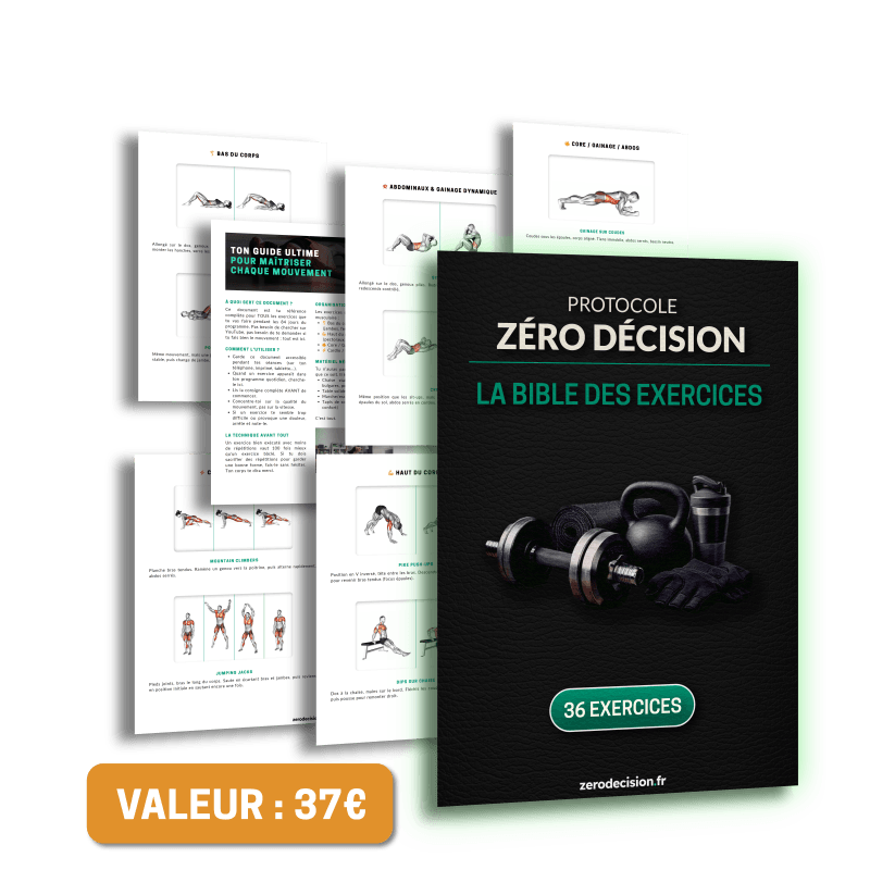 Nous sommes tellement confiants que le Protocole Zéro Décision va transformer ton physique que tu peux l'essayer pendant 60 jours. Si tu n'es pas satisfait, envoie simplement un mail à contact@zerodecision.fr et on te rembourse intégralement. Tu n'as rien à perdre et tout à gagner.