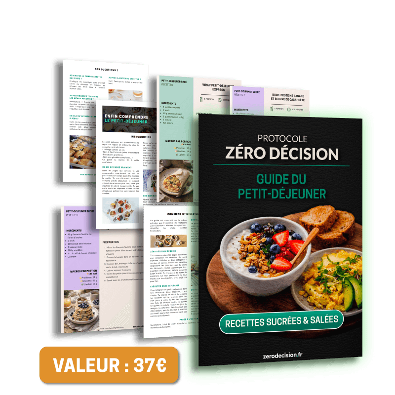 C'est le guide qui met fin au débat sur le petit déjeuner. Avec ce guide, tu connaîtras les bonnes pratiques à suivre mais aussi des recettes sucrées et salées adaptées à tes objectifs pour que ton petit déjeuner devienne un vrai levier de transformation sans jamais te poser de questions.